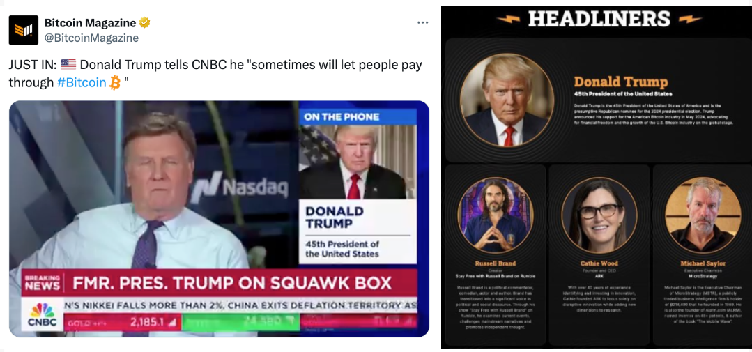트럼프 후보는 이번 비트코인 컨퍼 메인 스피커로